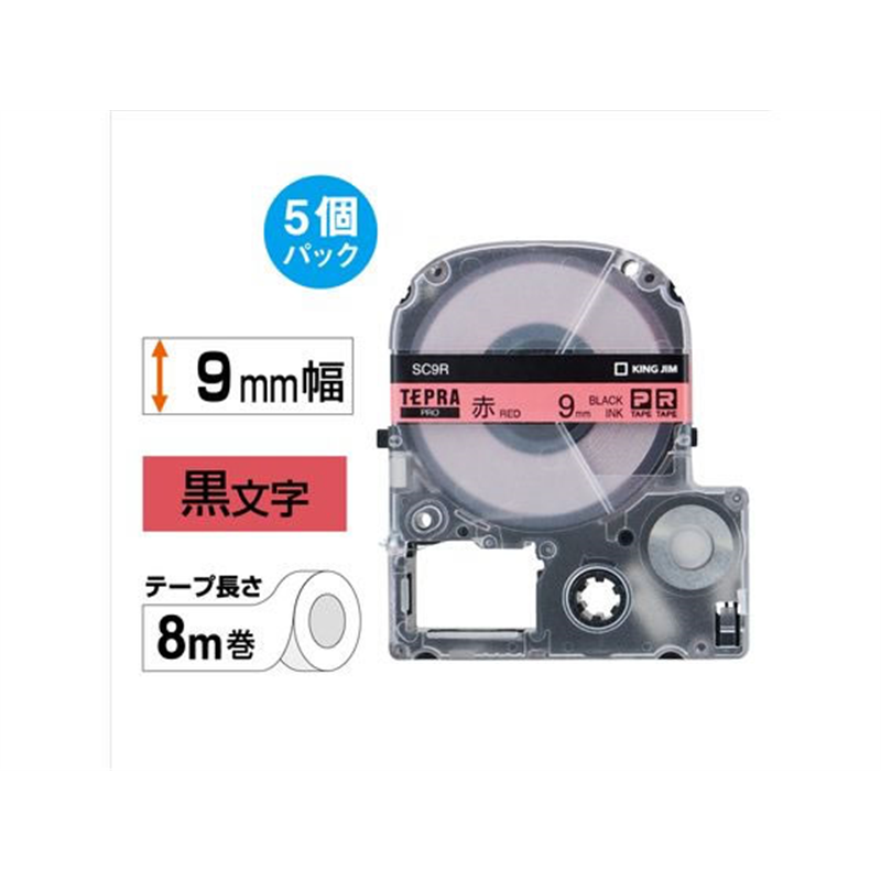 キングジム テプラPROテープ 9mm 赤/黒文字 5個 SC9R-5P 1箱(ご注文単位1箱)【直送品】