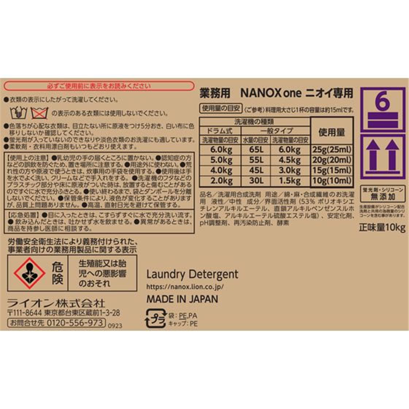 ライオンハイジーン 業務用NANOX one ニオイ専用 10kg 1箱(ご注文単位1箱)【直送品】