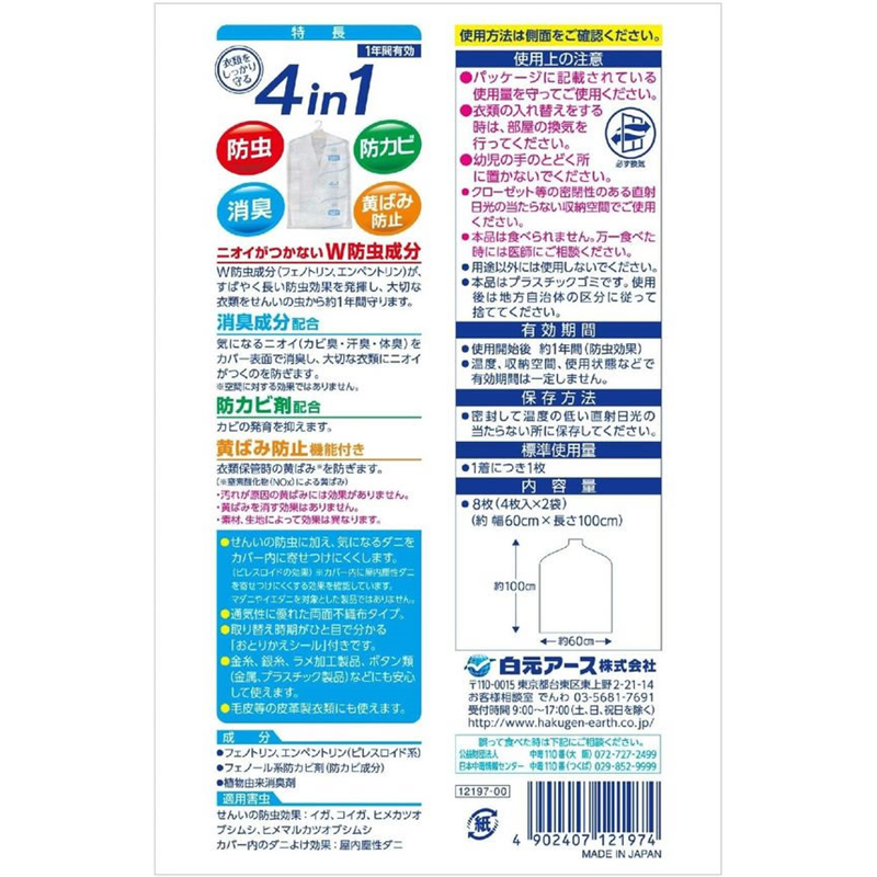 白元アース ミセスロイド防虫カバー スーツ・ジャケット用 1年防虫 8枚 1個(ご注文単位1個)【直送品】