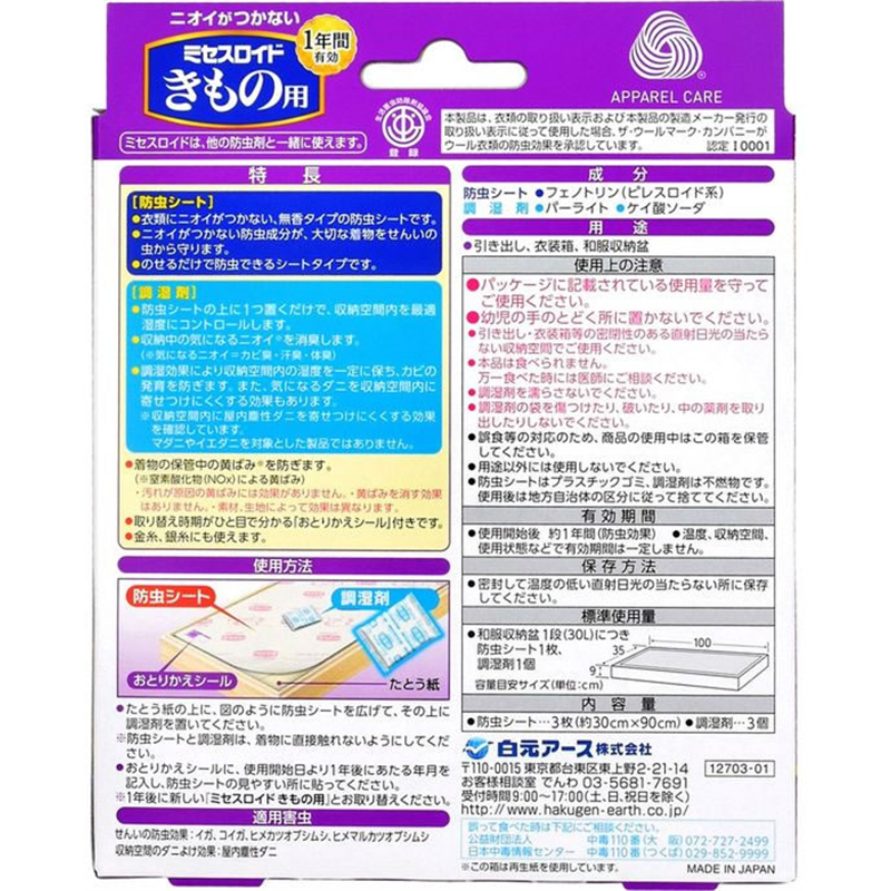 白元アース ミセスロイド きもの用 防虫シート+調湿剤 3セット 1箱(ご注文単位1箱)【直送品】