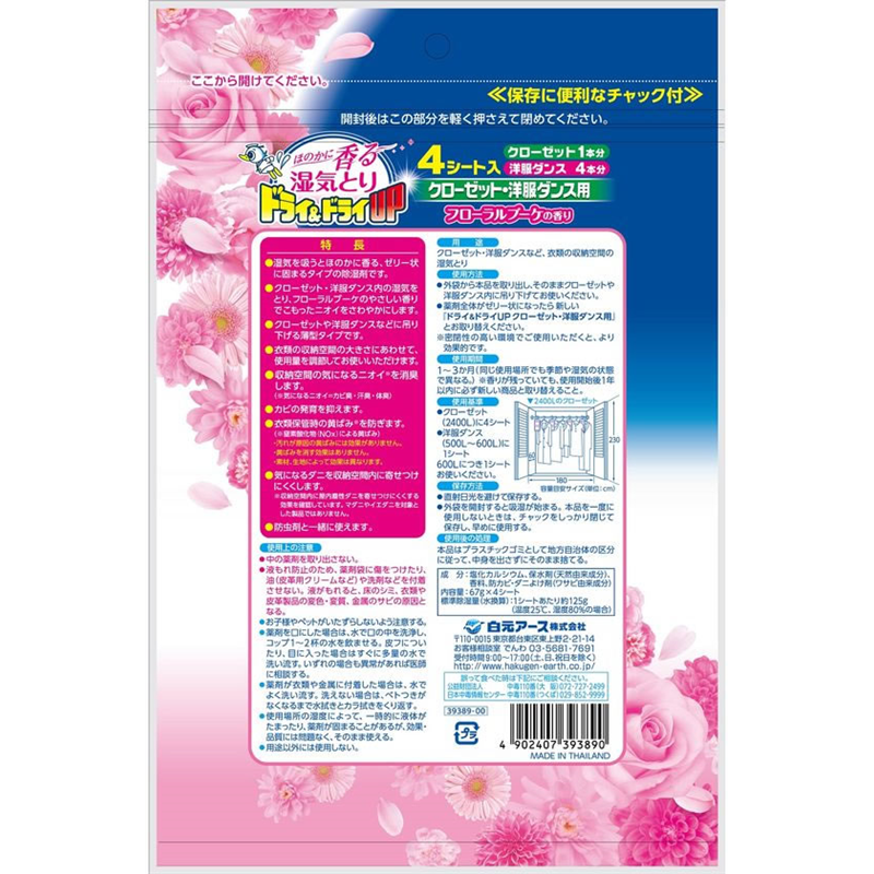 白元アース ドライ&ドライUP クローゼット・洋服ダンス フローラルブーケ 4枚 1パック(ご注文単位1パック)【直送品】