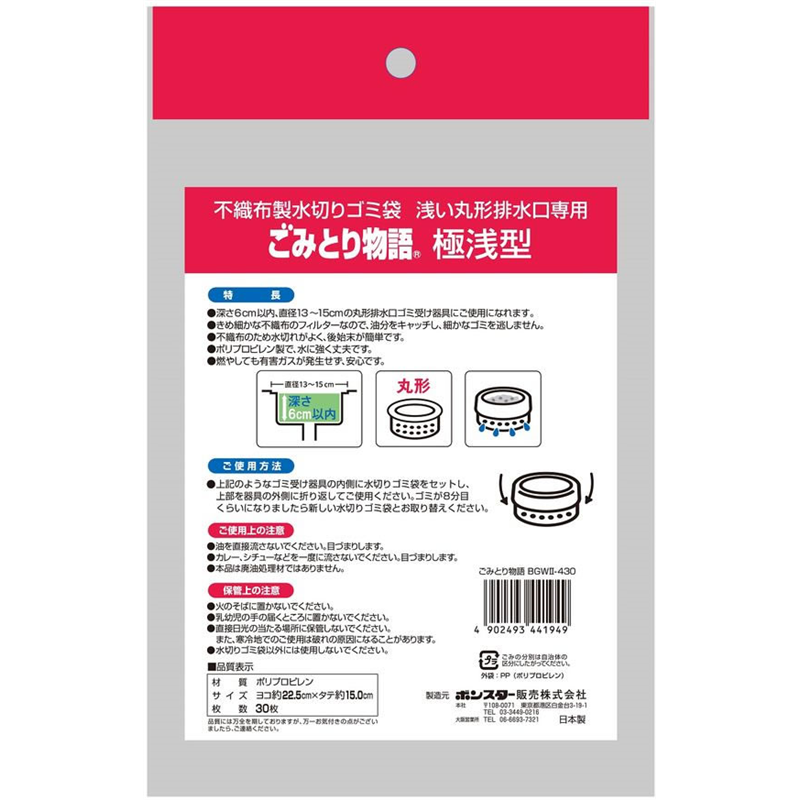 ボンスター販売 ごみとり物語 丸形排水口専用 極浅型 30枚 1パック(ご注文単位1パック)【直送品】