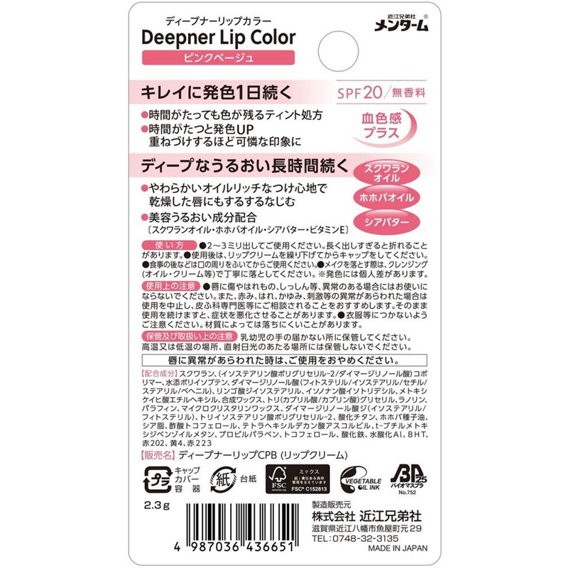 近江兄弟社 メンターム ディープナーリップカラー ピンクベージュ 2.3g 1個(ご注文単位1個)【直送品】
