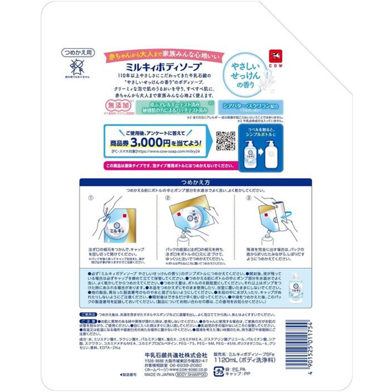 牛乳石鹸 ミルキィボディソープ 特大 詰替 1120mL 1個(ご注文単位1個)【直送品】
