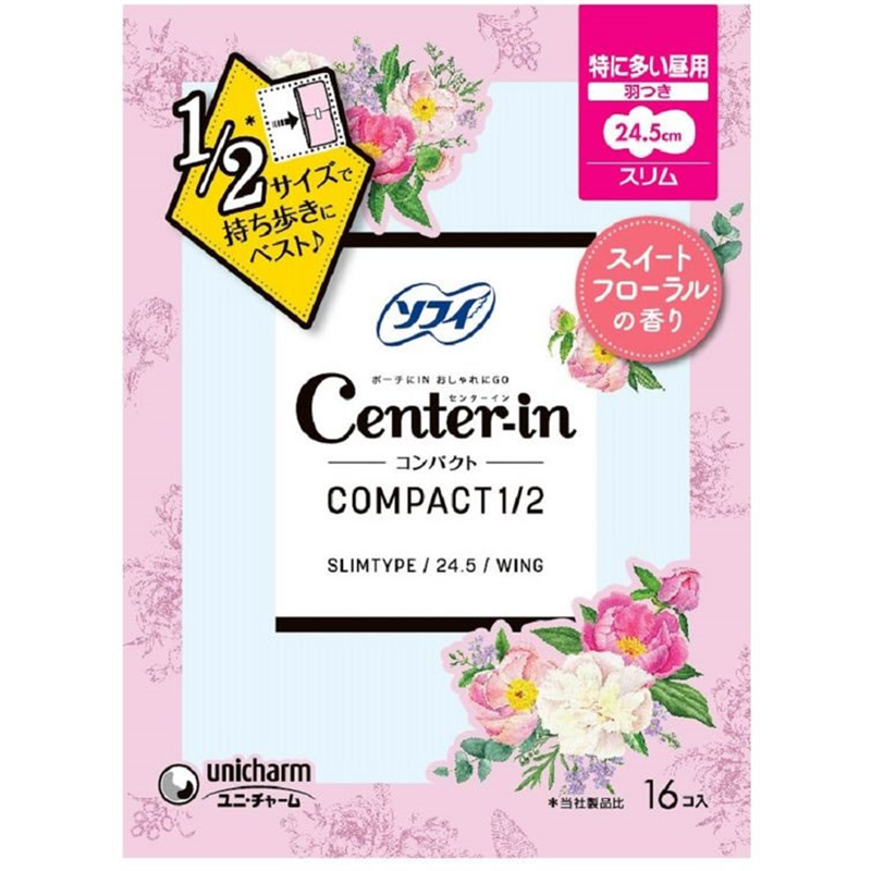 ユニ・チャーム センターイン コンパクト1/2 フローラル香 特多い昼羽付16枚 1個(ご注文単位1個)【直送品】