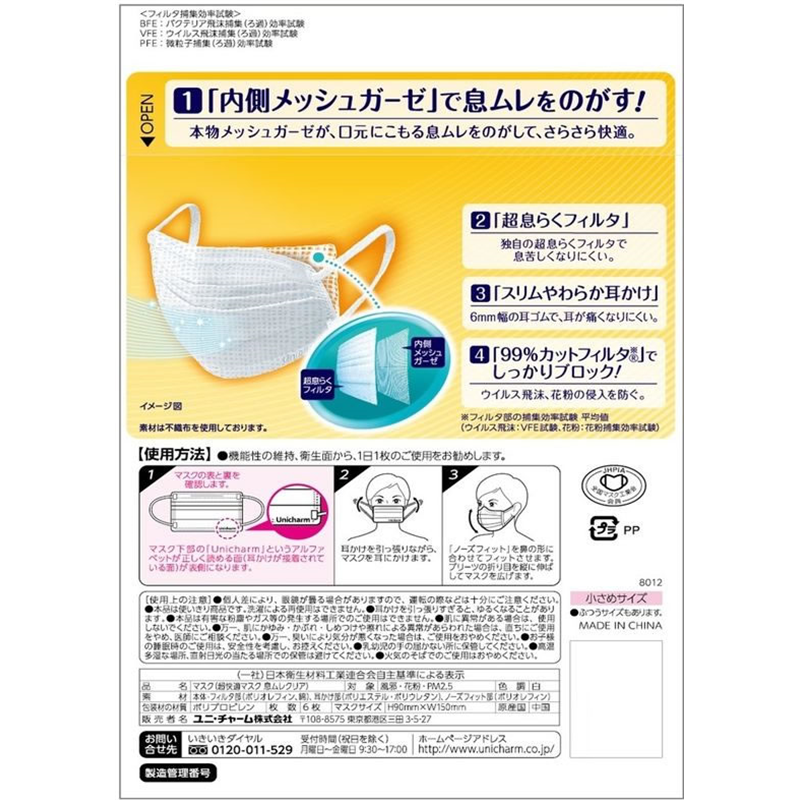 ユニ・チャーム 超快適マスク息ムレクリアタイプ 小さめサイズ 白 6枚 1パック(ご注文単位1パック)【直送品】