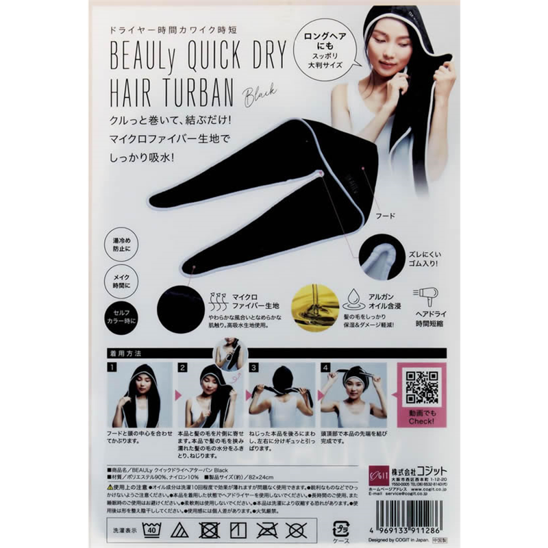 コジット BEAULyクイックドライヘアターバン BK 91128 1個(ご注文単位1個)【直送品】