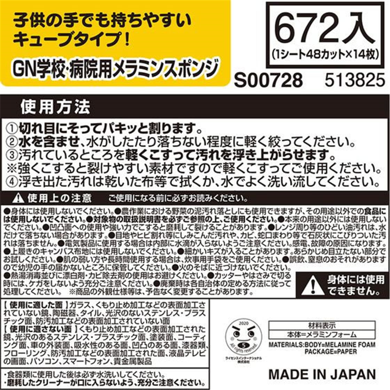 レック 激落ちくん 学校・病院用メラミンスポンジ 672個入り 1箱(ご注文単位1箱)【直送品】