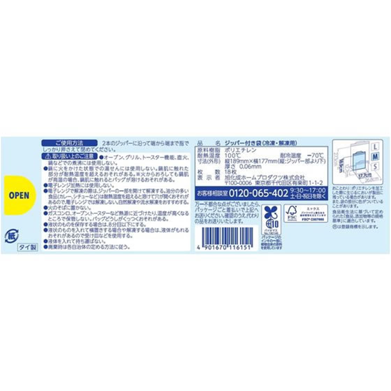 旭化成 ジップロックフリーザーバッグ M 18枚 1個(ご注文単位1個)【直送品】