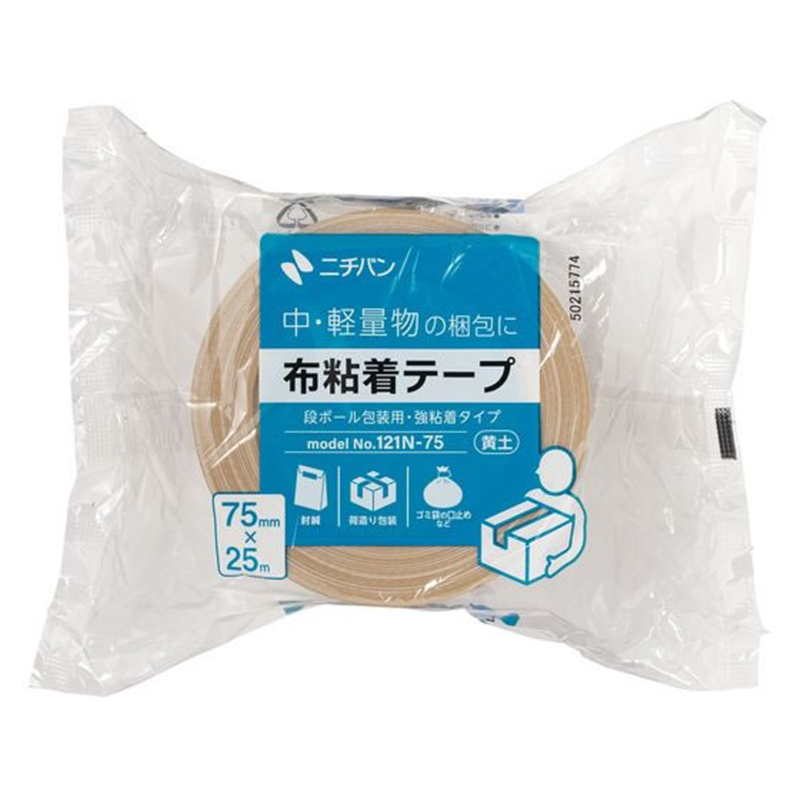 ニチバン 布粘着テープ 75mm×25m 黄土 121N-75 1巻(ご注文単位1巻)【直送品】