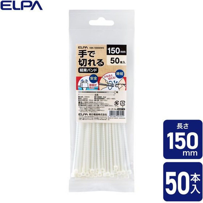 朝日電器 手で切れる結束バンド 150mm ホワイト 50本 1パック(ご注文単位1パック)【直送品】