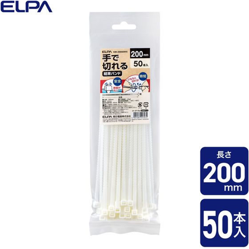 朝日電器 手で切れる結束バンド 200mm ホワイト 50本 1パック(ご注文単位1パック)【直送品】