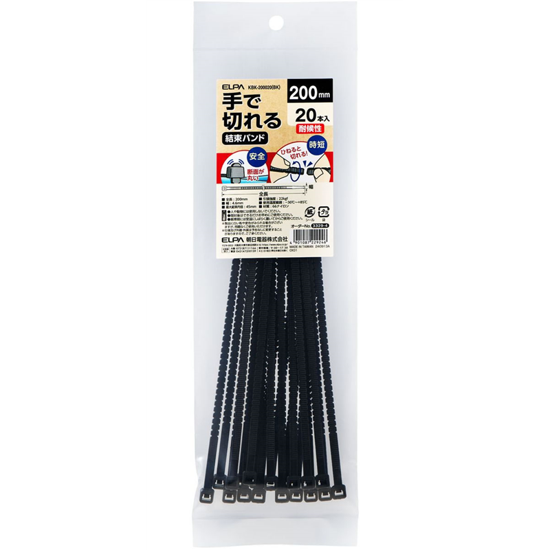 朝日電器 手で切れる結束バンド 200mm 耐候 ブラック 20本 1パック(ご注文単位1パック)【直送品】