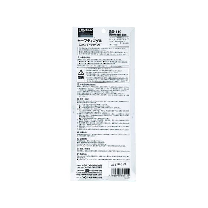 TRUSCO 飛来粉塵用セーフティゴーグル ポリカーネートレンズ GS-110 1個(ご注文単位1個)【直送品】
