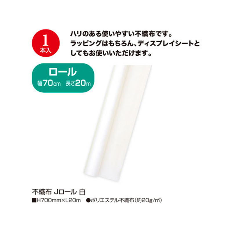タカ印 不織布 Jロール 白 700mm×20m 49-9008 1本(ご注文単位1本)【直送品】