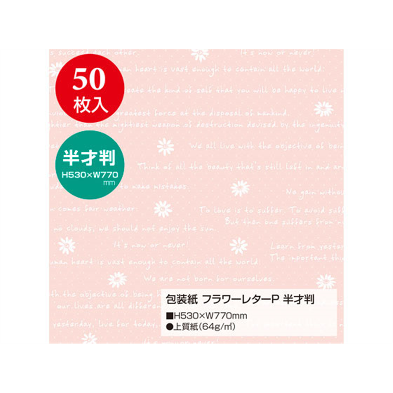 タカ印 包装紙 フラワーレターP 半才判(530×770mm) 50枚 1束(ご注文単位1束)【直送品】
