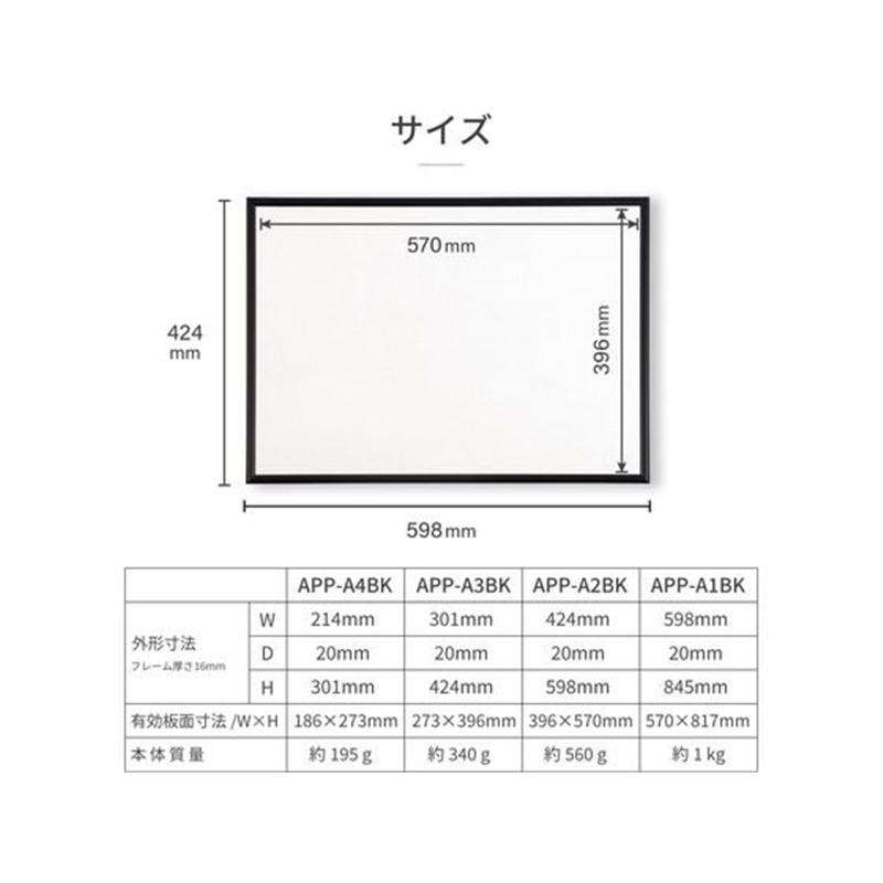 アスカ アルミ枠ポスターパネル ブラック A2 APP-A2BK 1枚(ご注文単位1枚)【直送品】