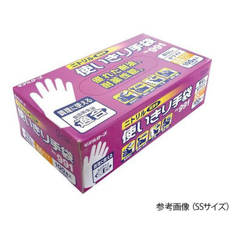 アズワン ニトリル使いきり手袋 モデルローブ ホワイト S No.991 4-14 1箱(ご注文単位1箱)【直送品】