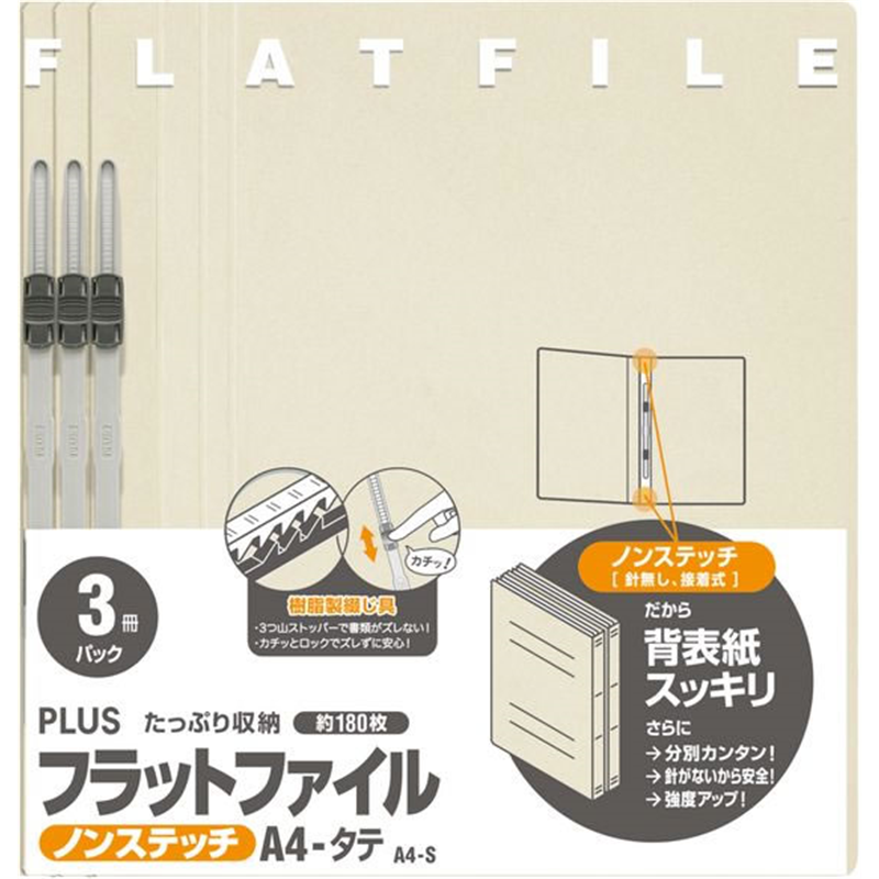 プラス フラットファイル 樹脂とじ具A4-S アイボリー 3冊 NO.023NP 1パック(ご注文単位1パック)【直送品】