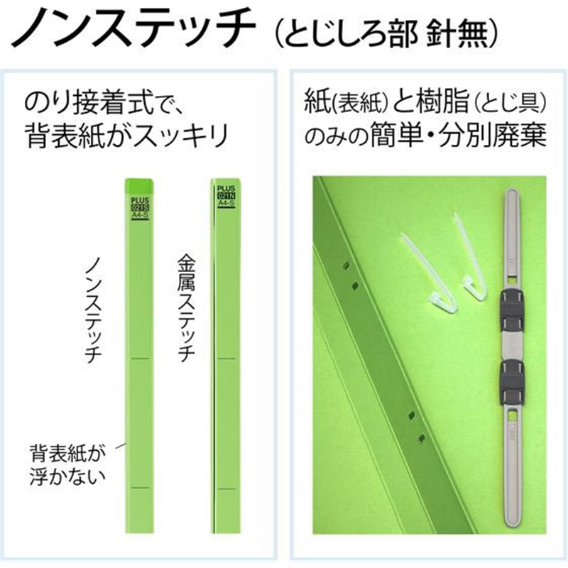 プラス フラットファイル 樹脂とじ具 10冊A4-S リーフグリーン NO.02 1パック(ご注文単位1パック)【直送品】