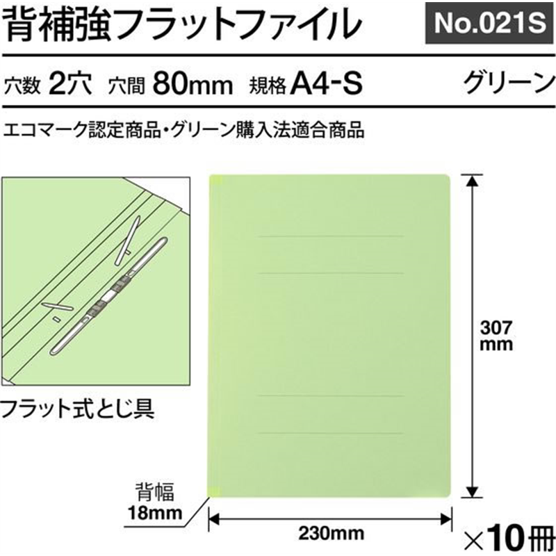 プラス フラットファイル 樹脂とじ具 10冊A4-Sグリーン NO.021S/ 1パック(ご注文単位1パック)【直送品】