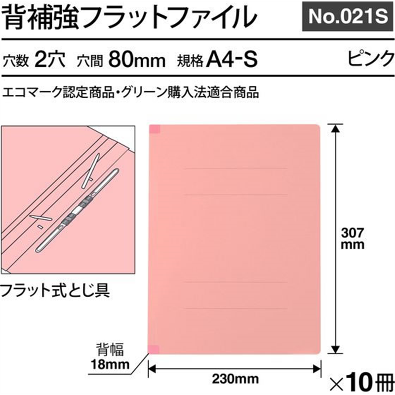 プラス フラットファイル 樹脂とじ具 10冊A4-Sピンク NO.021S/7 1パック(ご注文単位1パック)【直送品】