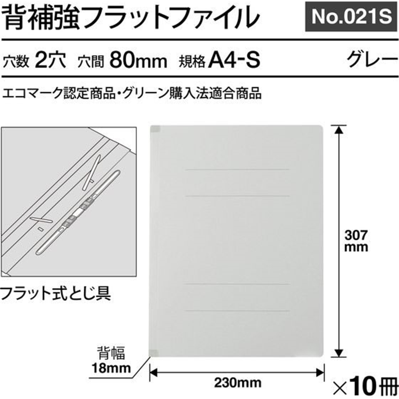 プラス フラットファイル 樹脂とじ具 10冊A4-Sグレー NO.021S/7 1パック(ご注文単位1パック)【直送品】