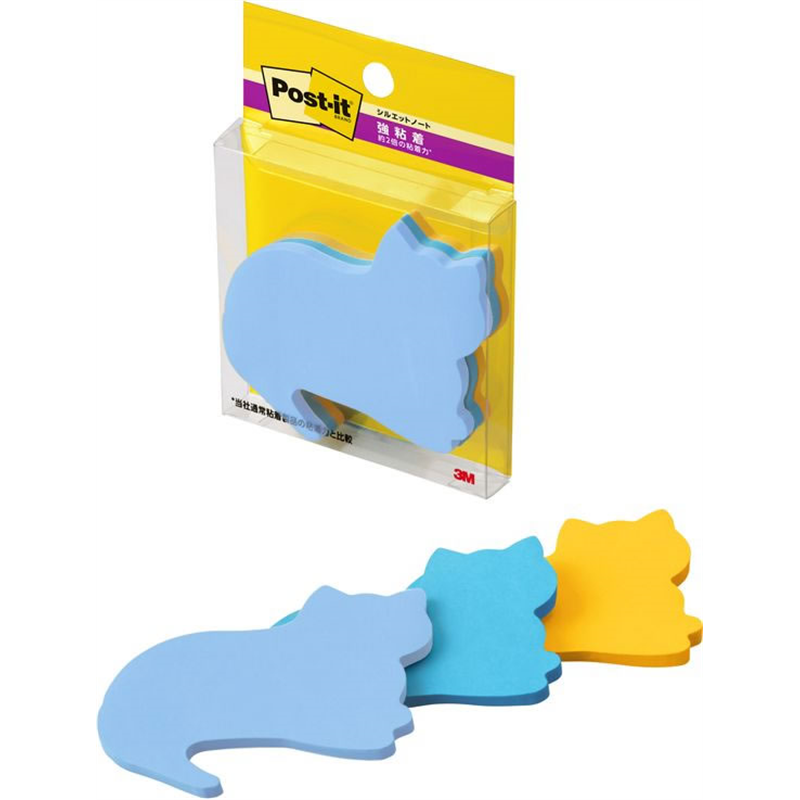 3M ポストイット ふせん 強粘着 ネコ 52mm×69mm 3冊 SSS-NEU 1パック(ご注文単位1パック)【直送品】