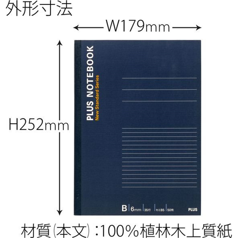 プラス ノートブック セミB5 B罫6mm 50枚 NO-005BS/76-705 1冊(ご注文単位1冊)【直送品】