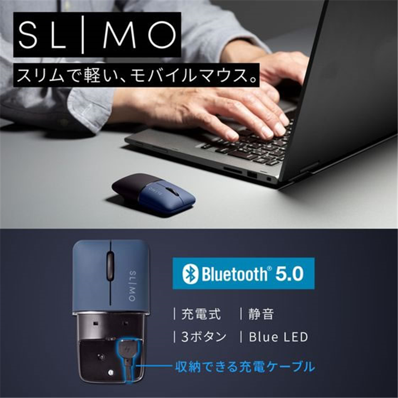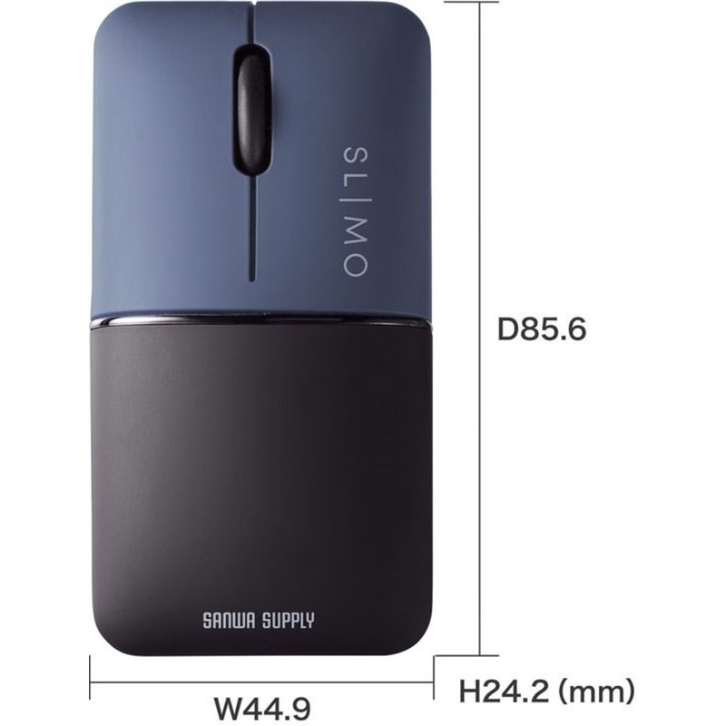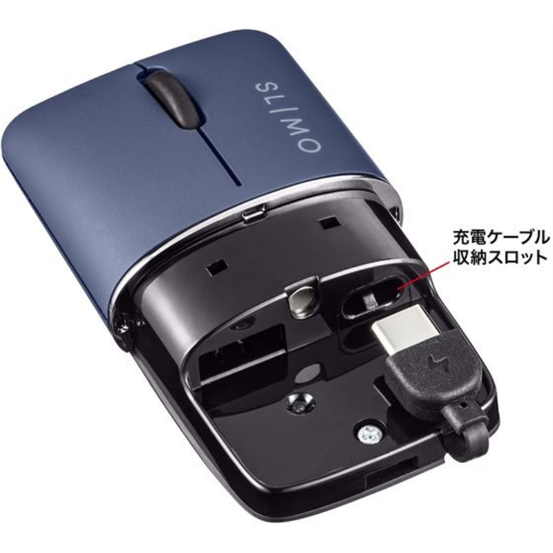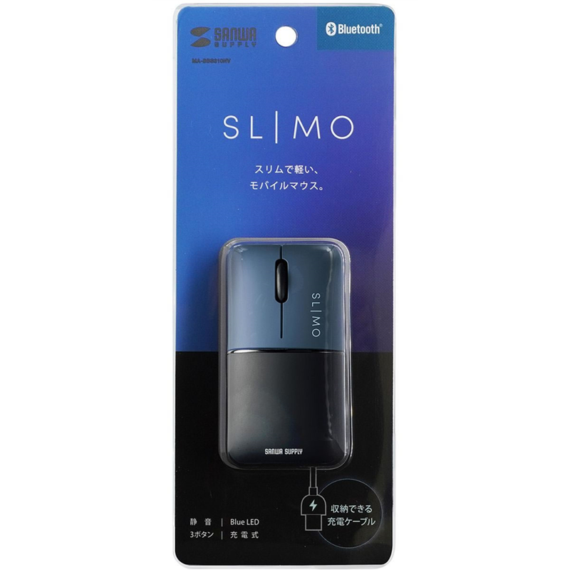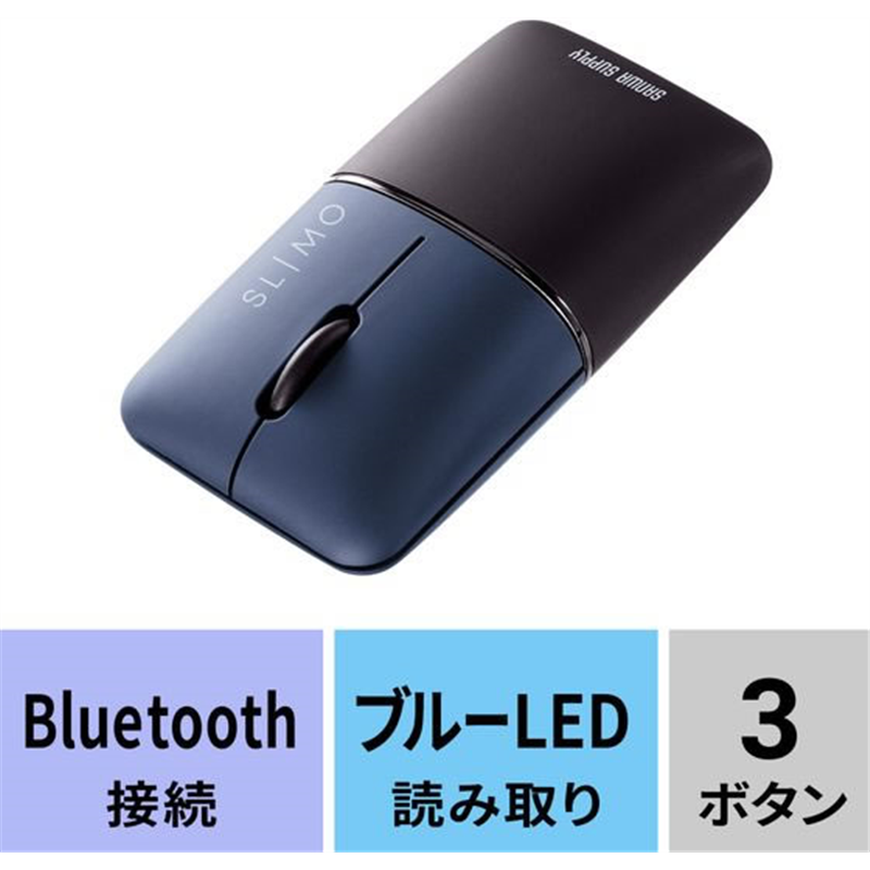 サンワサプライ 静音BluetoothブルーLEDマウス SLIMO 充電式 ネイビ 1個(ご注文単位1個)【直送品】