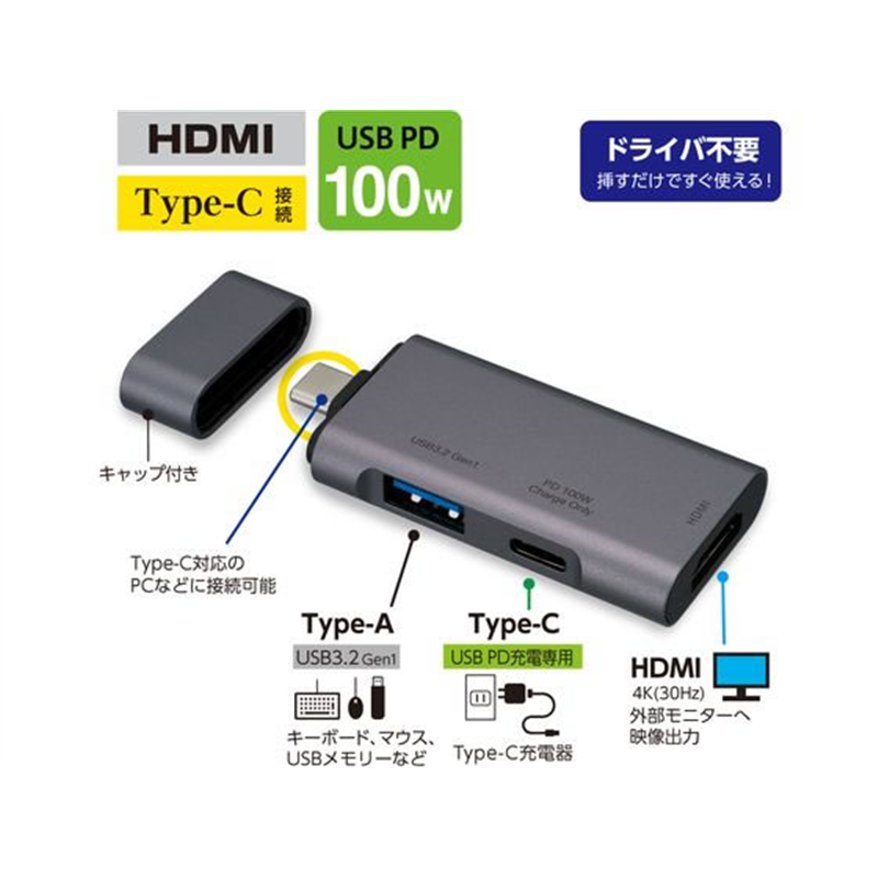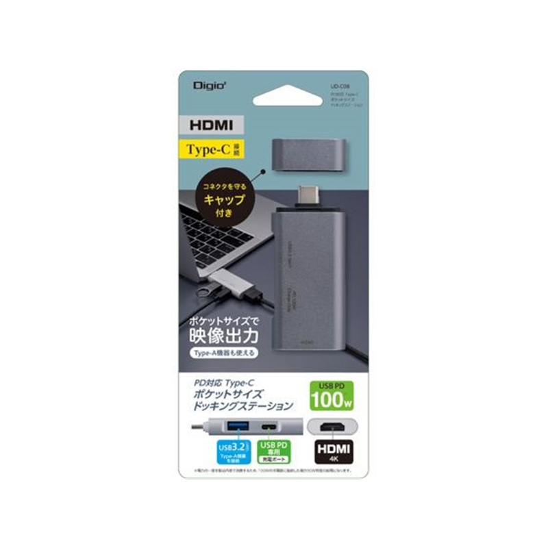 ナカバヤシ PD対応 Type-C ポケットサイズドッキングステーション グレー U 1個(ご注文単位1個)【直送品】