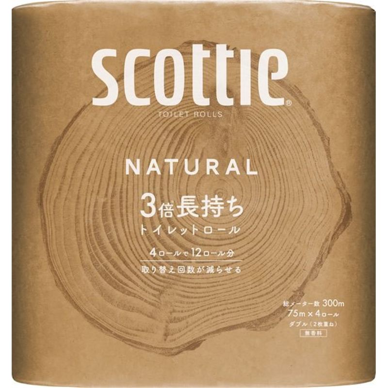 クレシア スコッティ ナチュラル 3倍長持ち ダブル 無香料 75m 4ロール 1パック(ご注文単位1パック)【直送品】