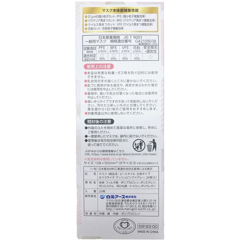白元アース ビースタイル 立体タイプ ふつうサイズ アッシュピンク×グレー 1箱(ご注文単位1箱)【直送品】