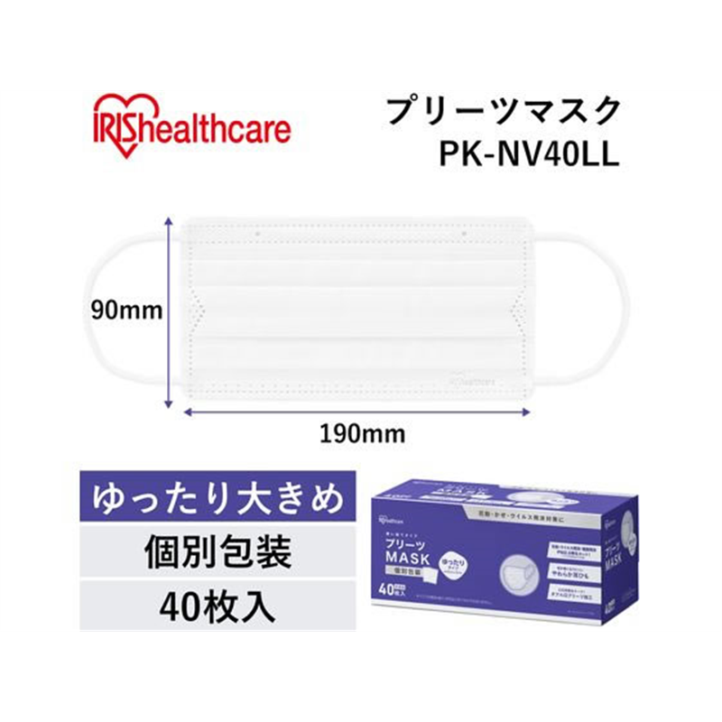 アイリスオーヤマ プリーツマスク 大きめサイズ 40枚入 ホワイト PK-NV40LL 1箱(ご注文単位1箱)【直送品】