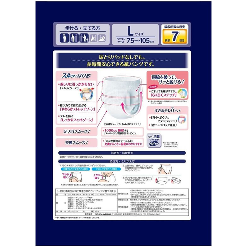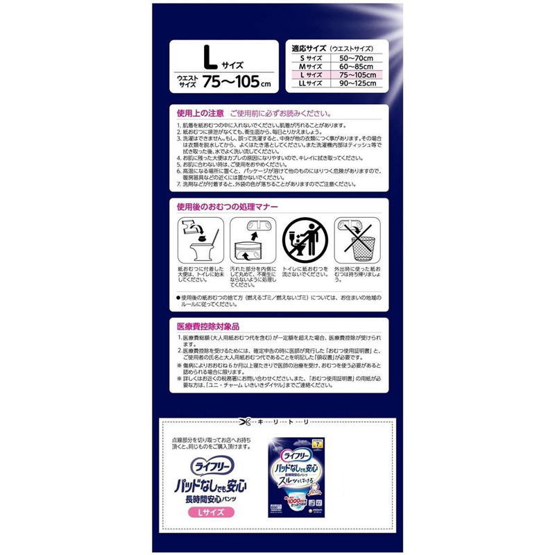 ユニ・チャーム ライフリー 尿とりパッドなしでも長時間安心パンツ L 1パック(ご注文単位1パック)【直送品】