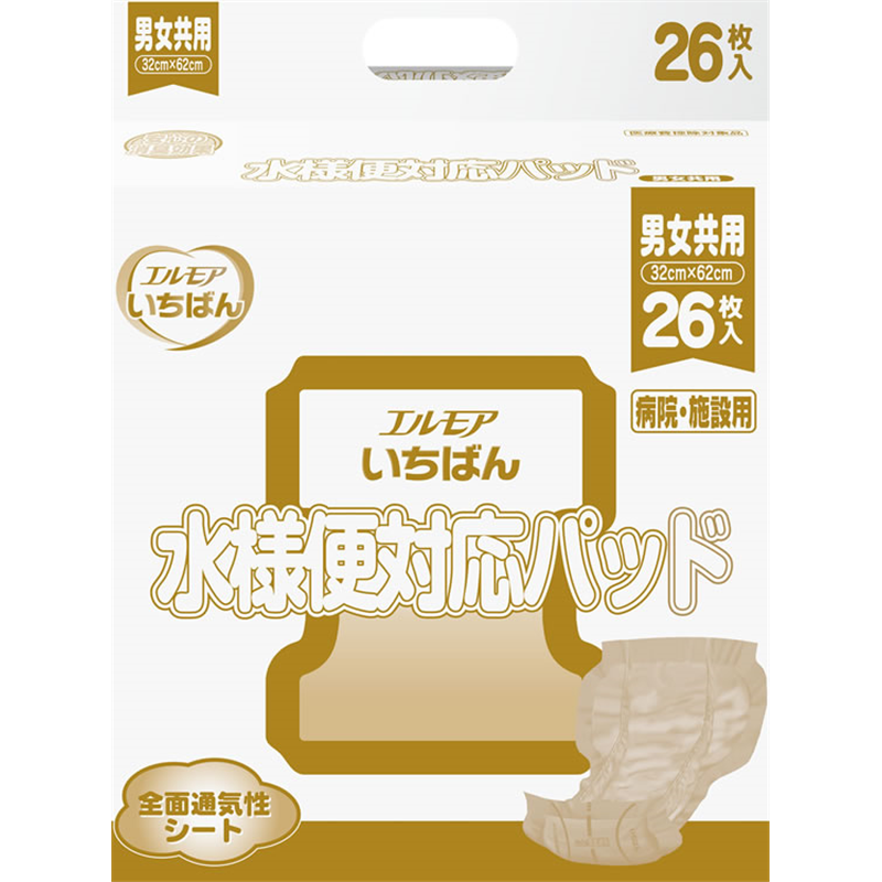 カミ商事 エルモアいちばん 水様便対応パッド 26枚 1パック(ご注文単位1パック)【直送品】