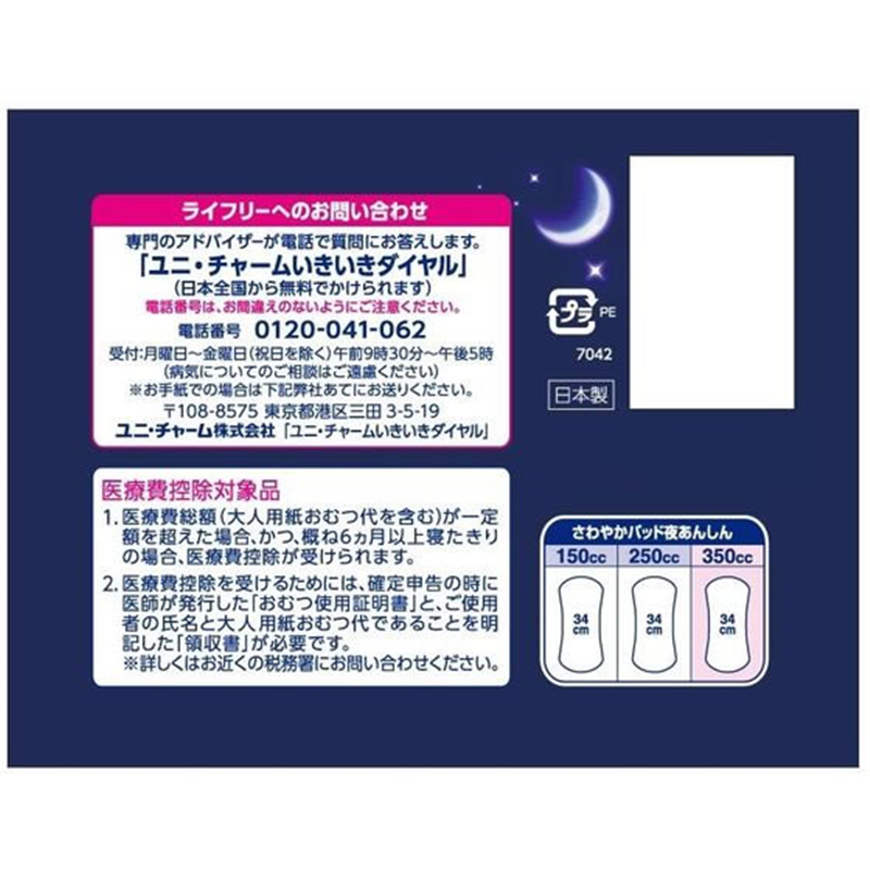 ユニ・チャーム ライフリー さわやかパッド 夜あんしん 350CC 10枚 1パック(ご注文単位1パック)【直送品】