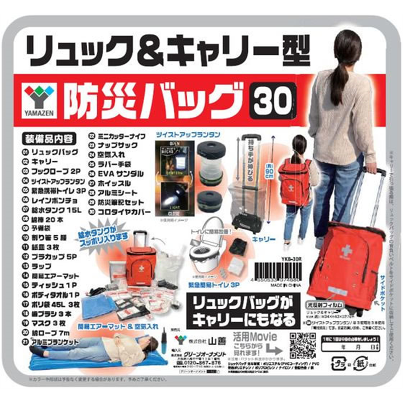YAMAZEN 防災リュック30点セット YKB-30R 1セット(ご注文単位1セット)【直送品】