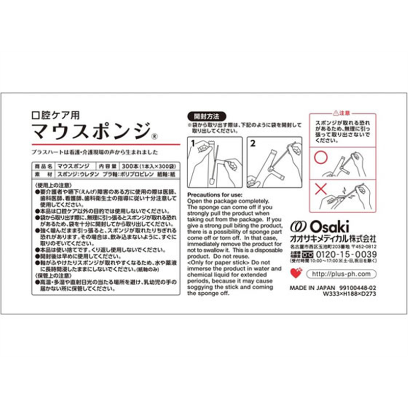 オオサキメディカル PH マウスポンジ 強化紙軸 ふつう 300本 74413 1箱(ご注文単位1箱)【直送品】