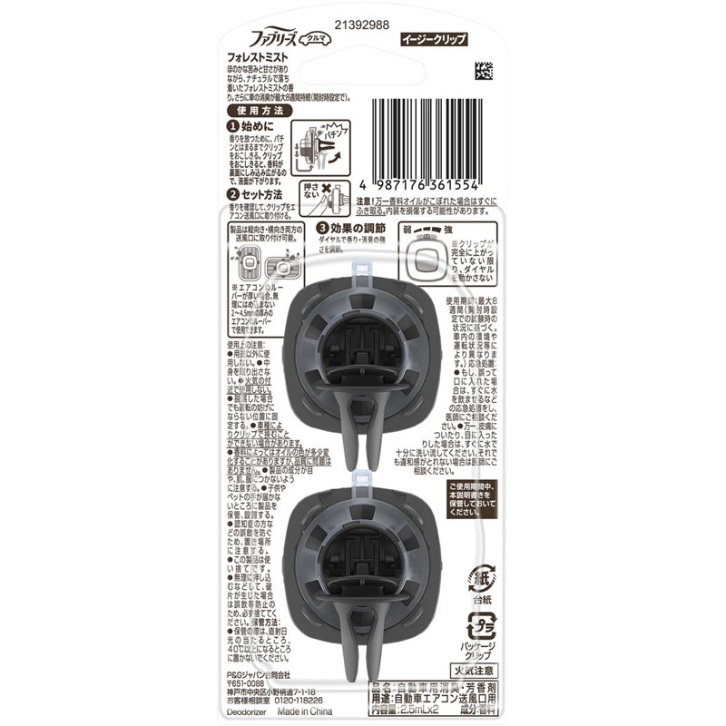 P&G ファブリーズ 自動車エアコン送風口用 フォレストミストの香り 2個 1パック(ご注文単位1パック)【直送品】