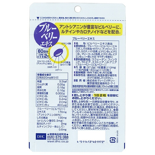 DHC ブルーベリーエキス 60日分 1個(120粒)(ご注文単位1個)【直送品】
