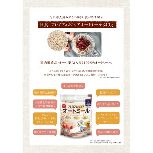 日本食品製造 日食 プレミアムピュア オートミール 340g 1パック(ご注文単位1パック)【直送品】