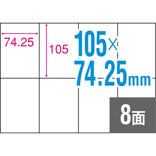 - ●レイアウトソフト対応!!●サイズ/A4●シートサイズ/210×297mm●ラベルサイズ/74.25×105mm●面付け/8面●紙質/上質紙●総厚み/約0.15mm●白色度/約120%●1箱=100シート×5冊※コピー、レーザーは厚紙モード・手差し給紙でお使いください。機種によっては対応しない場合がございます。※インクジェットはにじみが生じる場合がございます。●A4サイズ8面のタックシール、100シート×5冊入です。●製造現場での利用に便利な面付けのラベル。●ヒサゴのラベル用レイアウトソフト「ヒサゴ工房」に対応。(※ダウンロード方法等の詳細は、メーカーのWebサイトにてご確認ください。「ヒサゴ工房」の使い方に関してはメーカーへお問い合わせください。)