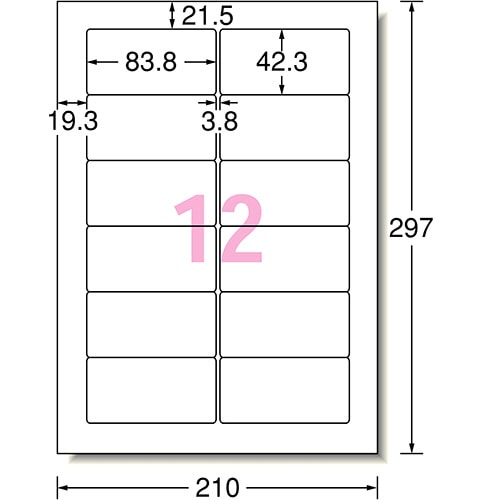 エーワン スーパーエコノミーシリーズ プリンタ用ラベル A4 12面 83.8×42.3mm 四辺余白付 角丸 L12BM500N 500枚/箱(ご注文単位1箱)【直送品】