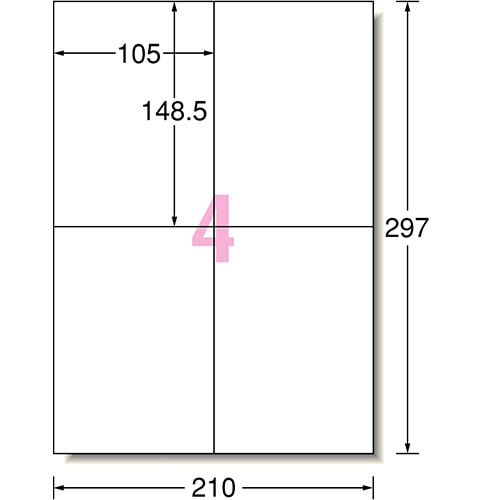 エーワン スーパーエコノミーシリーズ プリンタ用ラベル A4 4面 105×148.5mm L4AM500N 500枚/箱(ご注文単位1箱)【直送品】