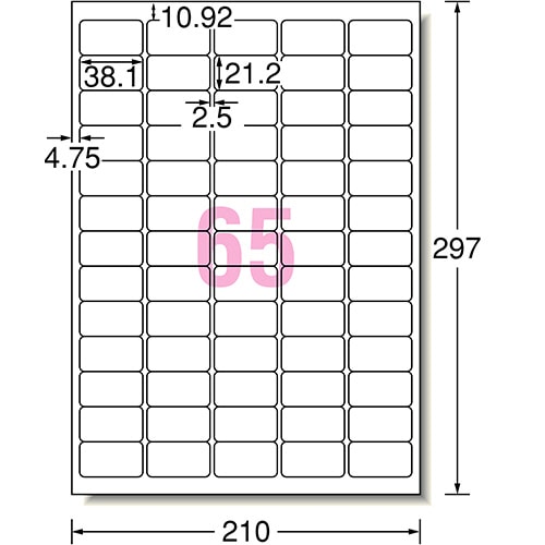 エーワン スーパーエコノミーシリーズ プリンタ用ラベル A4 65面 38.1×21.2mm 四辺余白付 角丸 L65AM500N 500枚/箱(ご注文単位1箱)【直送品】