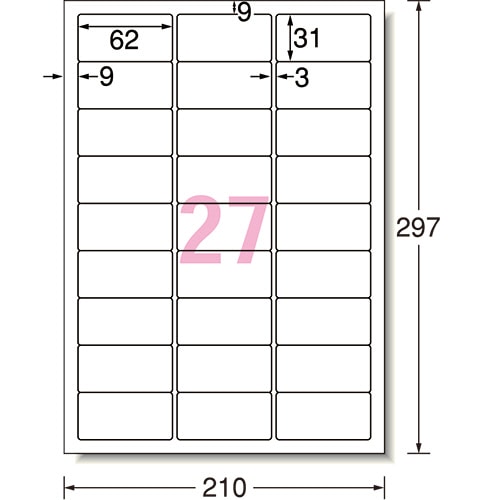 エーワン ラベルシール[インクジェット] 水に強いタイプ 光沢フィルム・ホワイト A4 27面 62×31mm 四辺余白付 角丸 28982 3枚/冊(ご注文単位1冊)【直送品】