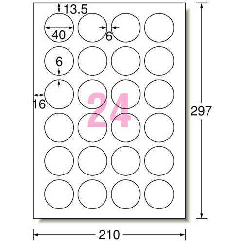 エーワン ラベルシール[インクジェット] 超耐水マット紙・ホワイト A4 24面 丸型40mmφ 62424 20枚/冊(ご注文単位1冊)【直送品】