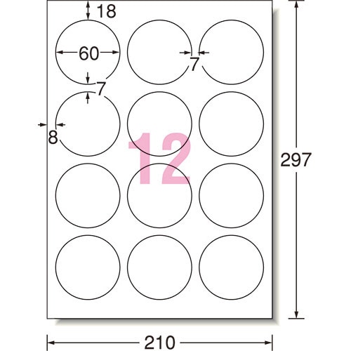 エーワン ラベルシール[インクジェット] 超耐水光沢紙・ホワイト A4 12面 丸型60mmφ 64412 10枚/冊(ご注文単位1冊)【直送品】
