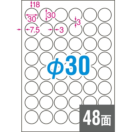 エーワン ラベルシール[プリンタ兼用] キレイにはがせるタイプ マット紙・ホワイト A4 48面 丸型30mmφ 31296 10枚/冊(ご注文単位1冊)【直送品】